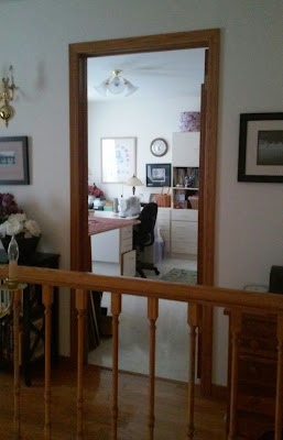 The cutting table is clear and has a wall quilt on it resting and getting de-creased. I will hang it soon. It doesn't have a sleeve as the hand sewing with my painful hands was too much so I'll put it up with a few straight pins nailed into the wall.